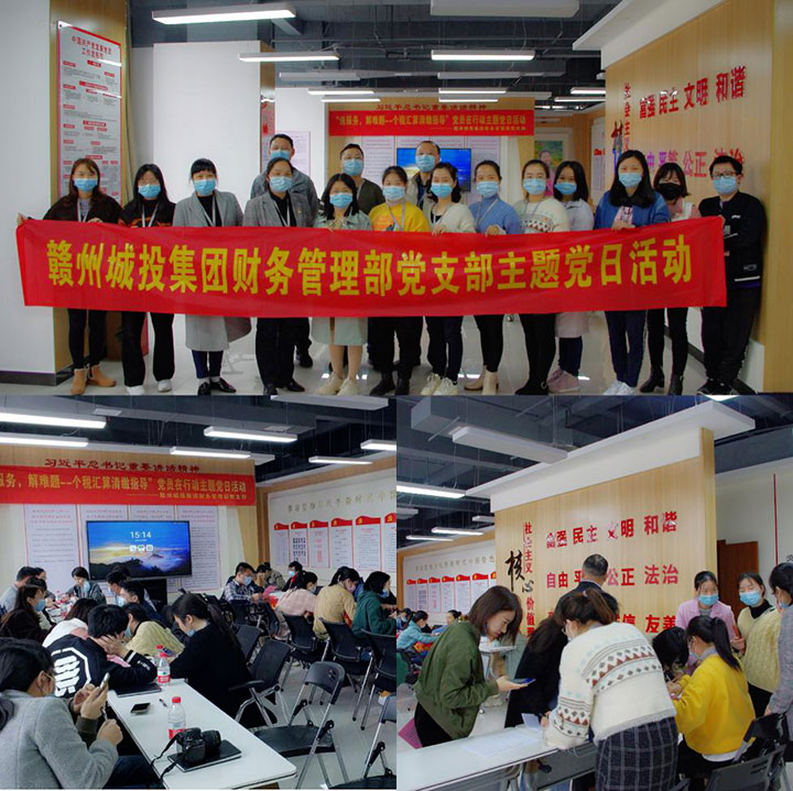 為推進(jìn)黨建工作與財(cái)務(wù)管理工作深度融合,解決2020年集團(tuán)員工在個(gè)人所得稅匯算清繳中遇到的困難,4月24日,贛州城投集團(tuán)財(cái)務(wù)管理部黨支部組織支部黨員及入黨申請(qǐng)人在集團(tuán)13樓黨性教育體驗(yàn)室,開(kāi)展了“送服務(wù),解難題”主題黨日活動(dòng),邀請(qǐng)了集團(tuán)各部門(mén)、子公司員工代表參加活動(dòng)。