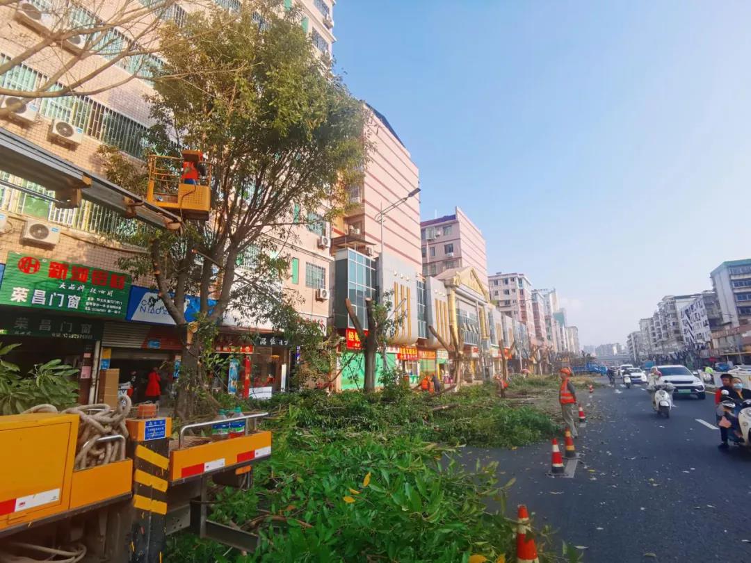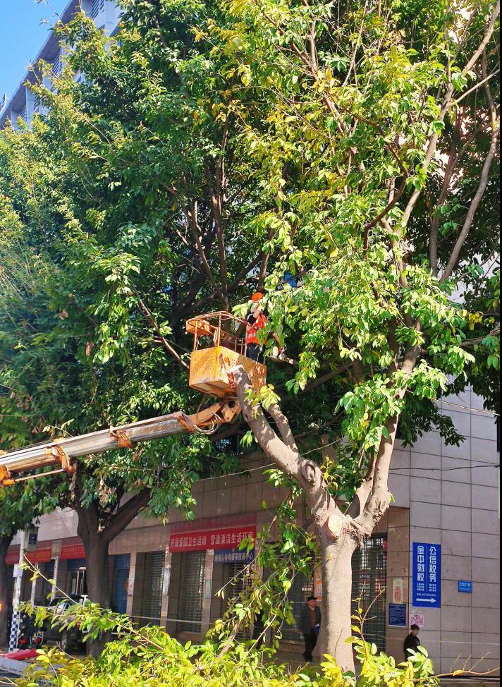 生態(tài)環(huán)境公司將對站北社區(qū)、文明大道、寧都路、楊公路等13個路段及街道約2000多株行道樹進行了修剪。行道樹主要品種為大葉榕、小葉榕,高度均在10-40米之間,有接近100棵為40米高度,整體作業(yè)難度增加,截止目前為此,已修剪200多棵,預(yù)計整個修剪工作要持續(xù)到6月中旬。