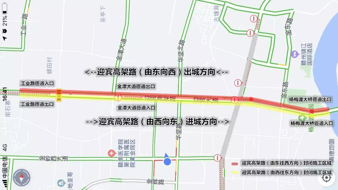 因東江源大道快速路將施工上跨迎賓高架橋主線的鋼混梁,主要施工工序有搭設(shè)鋼梁拼裝平臺(tái)、吊裝鋼梁、焊接鋼梁、滑移鋼梁就位等,屆時(shí)將影響迎賓高架橋通行安全,需臨時(shí)封閉迎賓高架橋部分路段。
