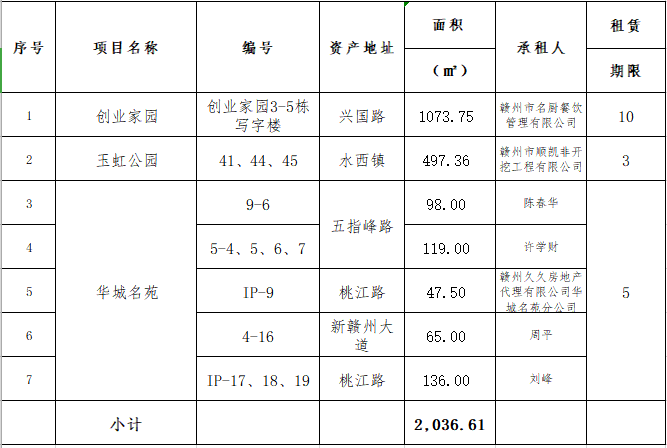 2021年5月28日下午14時30分,在贛州市公共資源交易中心舉行的贛州振興實業(yè)有限責任公司五指峰路等十三宗資產公開招租(項目編號GZCQ2021073),現將公開招租成交情況公示如下: