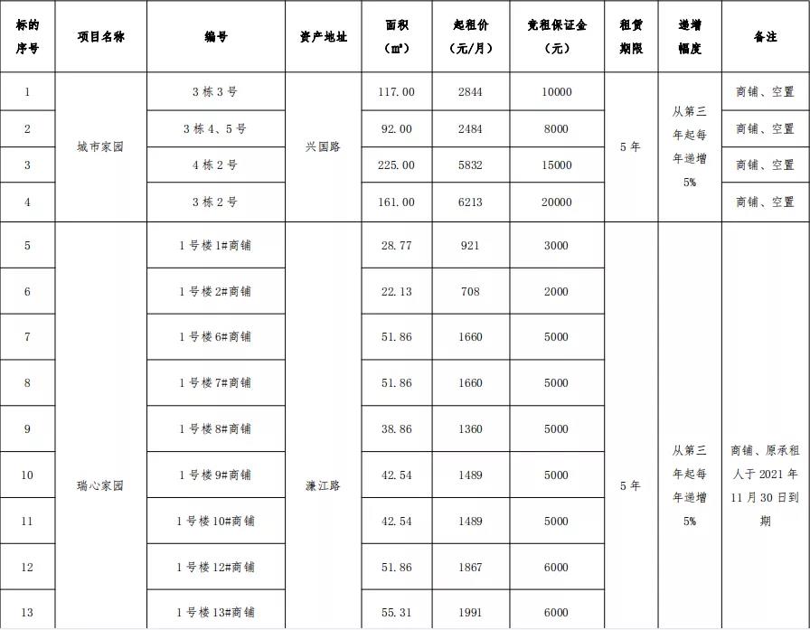 贛州振興實(shí)業(yè)有限責(zé)任公司委托江西江南拍賣有限公司,定于2021年9月29日15:00在贛州市公共資源交易中心(長(zhǎng)征大道9號(hào))進(jìn)行國(guó)有資產(chǎn)公開招租,歡迎符合條件的單位或個(gè)人前來(lái)報(bào)名參加競(jìng)租,現(xiàn)將有關(guān)事項(xiàng)公告如下: