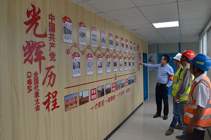 在贛州市蟠龍大橋項目部的黨員活動室走廊,贛州城投集團工程管理公司黨總支設(shè)置了一面黨史學(xué)習(xí)墻,記錄黨從1921年中共一大到十九大的偉大光輝歷程。在該項目部,贛州城投集團黨員帶著項目其他人員,定期到黨史學(xué)習(xí)墻前開展“黨史接龍”學(xué)習(xí),重溫歷史,傳承優(yōu)良的革命傳統(tǒng)。