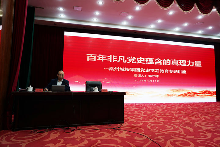 開(kāi)學(xué)典禮后,贛州城投大學(xué)(黨校)第二學(xué)期第一課黨史學(xué)習(xí)教育專題講座開(kāi)課。本次邀請(qǐng)了江西理工大學(xué)應(yīng)用科學(xué)學(xué)院黨委書記、馬克思主義學(xué)院教授、碩士生導(dǎo)師鄧亦林以《百年黨史中蘊(yùn)含的真理力量》的主題為全員作黨史學(xué)習(xí)教育專題講座。