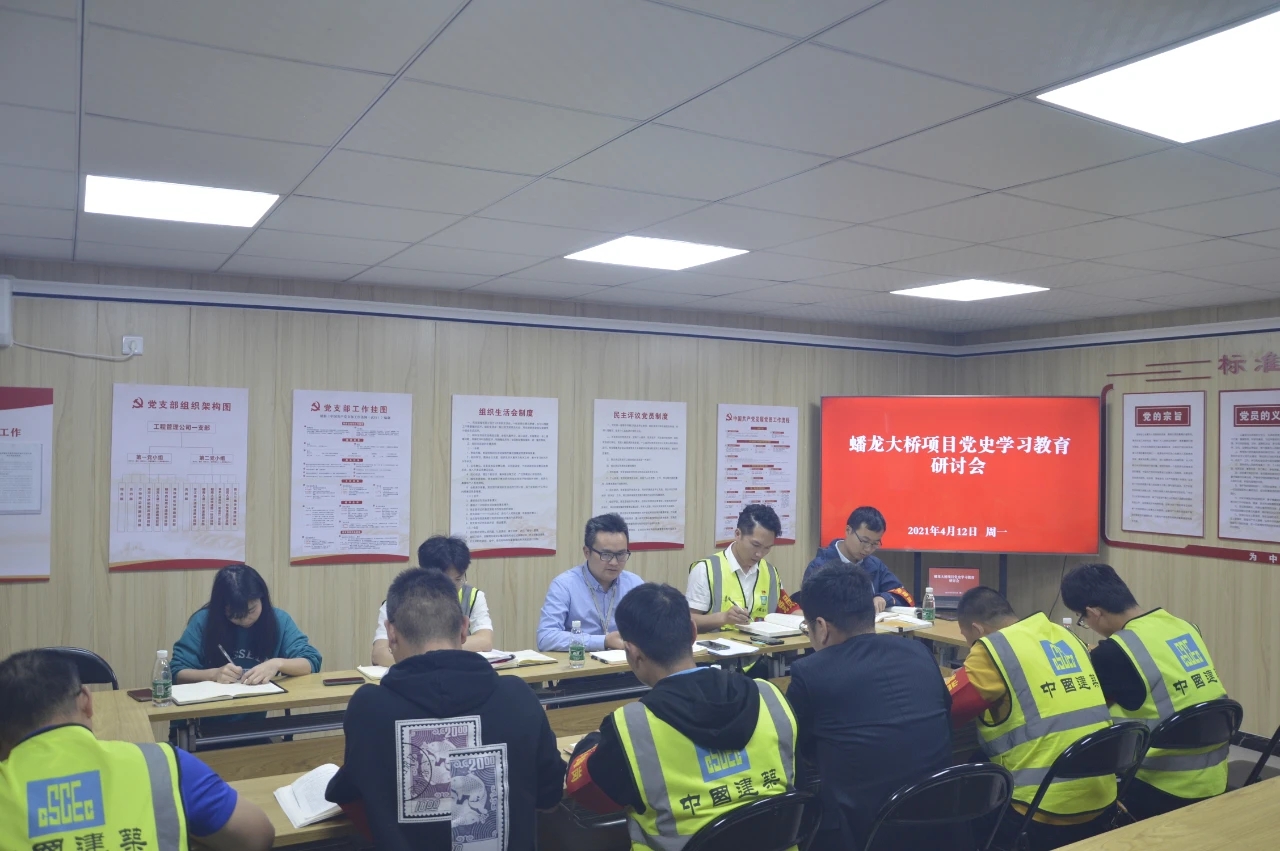 在蟠龍大橋項目,黨史學習教育活動已常態(tài)化開展。在辦公區(qū)、施工現(xiàn)場掛起了一抹抹醒目的黨史學習宣傳標語,在黨員活動室走廊設(shè)置了黨史學習墻。在每月首個工作日,項目部組織全體黨員及項目人員組織升旗活動,并開展國旗下的黨史故事誦讀活動。同時,組織觀看微紀錄片《見證初心和使命的“十一書”》,重溫革命先烈的感人故事,感悟初心使命,弘揚革命精神,為高質(zhì)量推動項目建設(shè)積極奮斗。