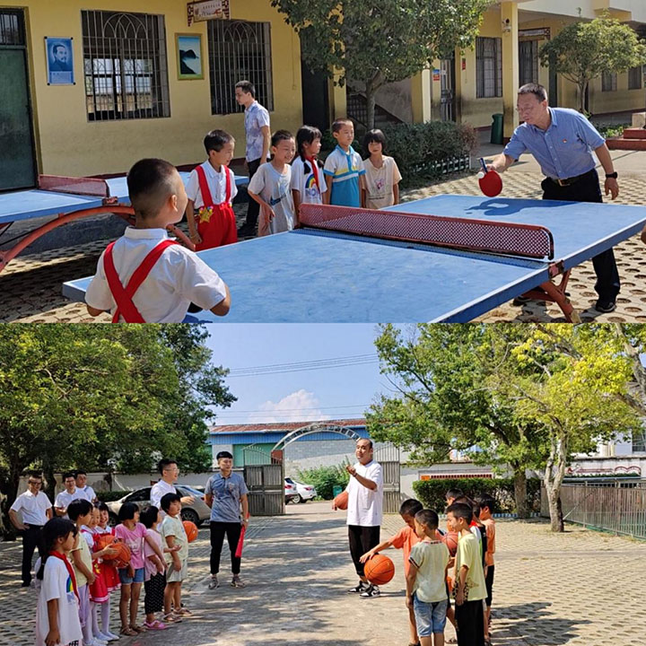 本次活動(dòng)分兩個(gè)階段開展。第一階段,以愛國主義教育為切入點(diǎn),分別在良田小學(xué)和東山小學(xué)開展。黃家偉帶領(lǐng)團(tuán)員與全體師生開展升國旗、唱國歌活動(dòng),在激昂的歌聲中向國旗敬禮、向祖國致敬。隨后,黃家偉代表集團(tuán)黨委向兩所學(xué)校捐贈(zèng)物資,用于改善當(dāng)?shù)剞r(nóng)村教學(xué)條件。在學(xué)生們課間休息時(shí)間,團(tuán)員們還陪伴學(xué)生們上了一堂豐富有趣的體育課。團(tuán)員們還與學(xué)校老師進(jìn)行交流座談,表達(dá)了關(guān)心與寄語。