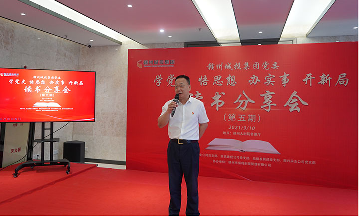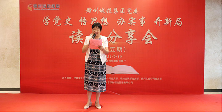 9月10日,為推動黨史學習教育有特色、出成效,贛州城投集團黨委在贛州大劇院售票廳舉辦“學黨史 悟思想 辦實事 開新局”黨史學習教育第五期讀書分享會。市國資委二級調(diào)研員宋英蒞臨指導,集團黨委副書記黃家偉出席并作點評講話,集團董事會秘書、集團相關(guān)部門負責人、各黨支部書記及部分黨員參加。