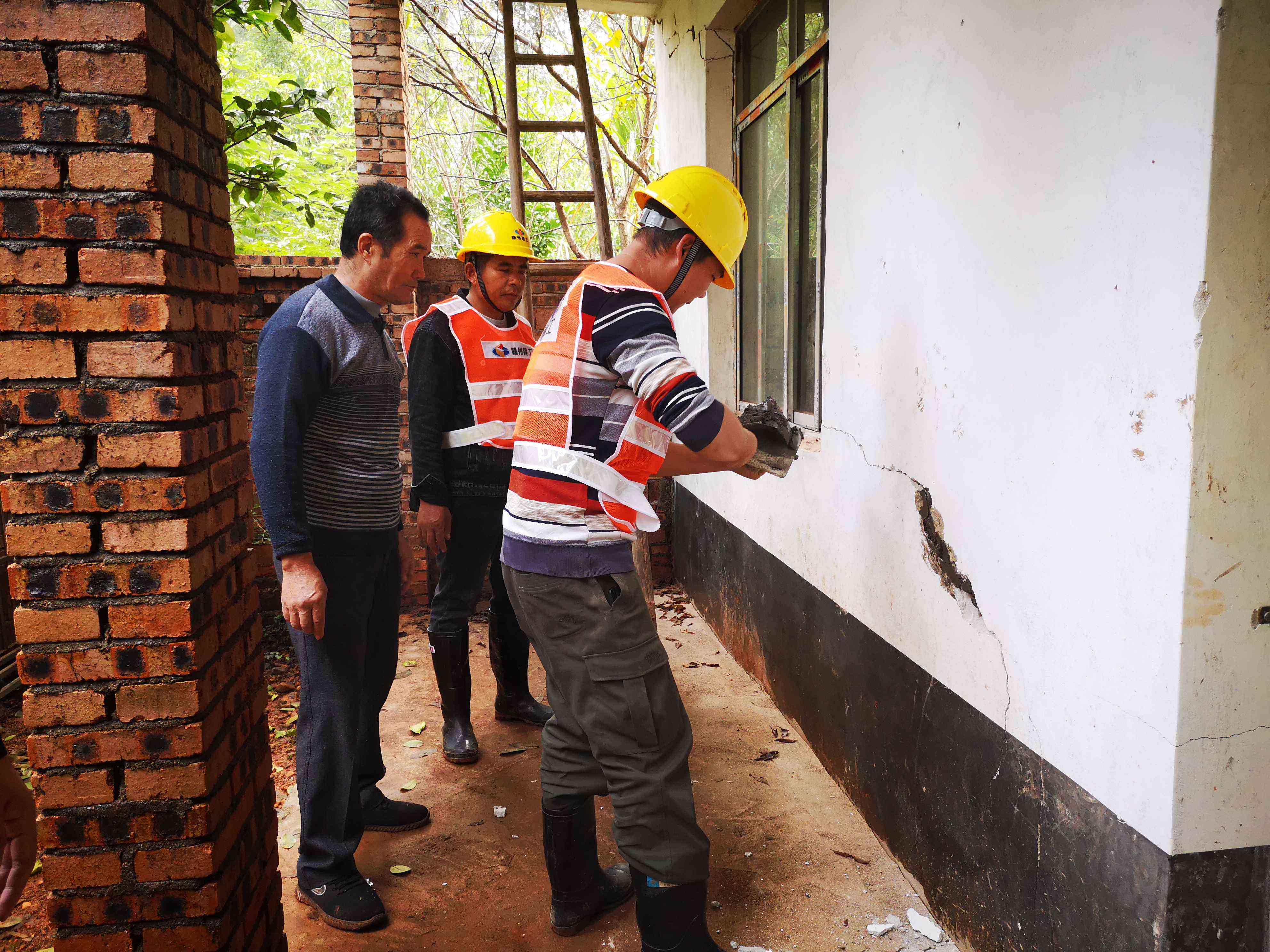 收到群眾訴求后,贛州建工集團(tuán)黨支部明確責(zé)任分工,由贛州建工集團(tuán)駐蓉江花園(四區(qū))項目部的工作人員前往實(shí)地了解情況。該村村民邱家飛年近七旬,所居住的房屋因年久失修,導(dǎo)致門廳墻面破損,房屋內(nèi)外均存在一定程度的裂縫。此外,村里另有一對姐弟居住的房屋由于結(jié)構(gòu)問題也存在幾處裂縫。
