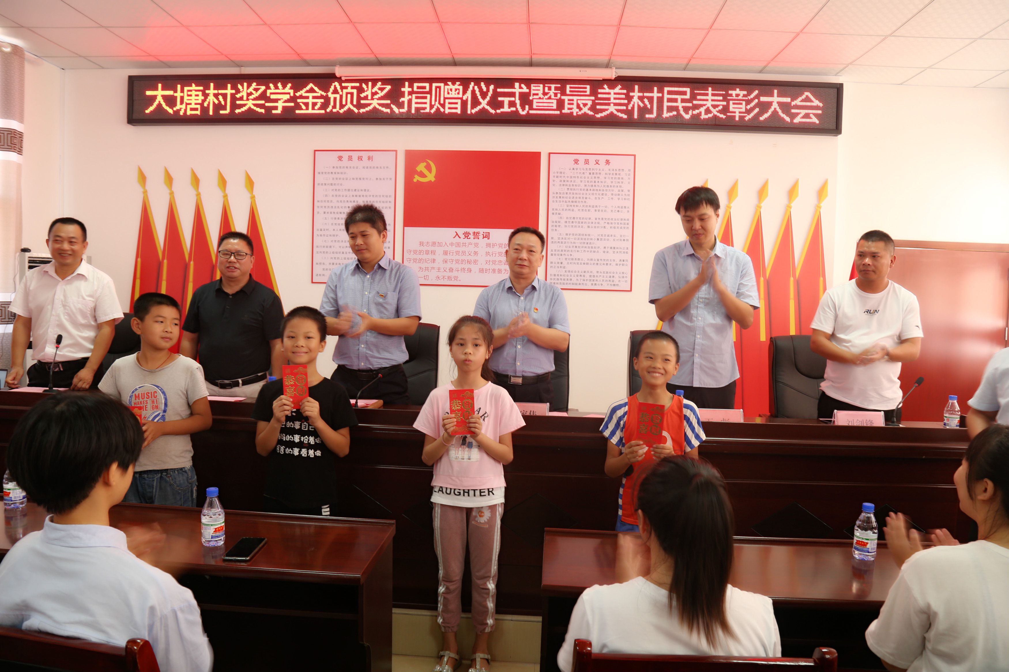 大會為大塘村7名大塘村小學(xué)優(yōu)秀教師、13名大塘村小學(xué)品學(xué)兼優(yōu)的學(xué)生、13名考入高等學(xué)府的學(xué)子頒發(fā)獎學(xué)金,共計發(fā)放獎學(xué)金3.4萬元,這是獲得“大塘村獎學(xué)金”的首批教師和學(xué)生。這不僅激勵大塘村的教師們精益求精繼續(xù)抓好鄉(xiāng)村教育,鼓勵大塘村的孩子們勤奮好學(xué)、頑強拼搏,還倡導(dǎo)更多愛心人士積極投身支持教育扶貧,堅決在大塘村脫貧攻堅陣地上阻斷貧困代際傳遞。