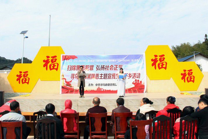 為持續(xù)推進(jìn)掃黑除惡專項(xiàng)斗爭(zhēng)工作,營(yíng)造全民知曉、全民參與的掃黑除惡濃厚氛圍,不斷提升群眾知曉率和滿意度,江西省尋烏縣創(chuàng)新宣傳形式,組織以“掃除黑惡勢(shì)力,弘揚(yáng)社會(huì)正氣”為主題的送戲下鄉(xiāng)巡回演出,通過(guò)群眾喜聞樂(lè)見(jiàn)的方式,將掃黑除惡專項(xiàng)斗爭(zhēng)“演”進(jìn)群眾心里。